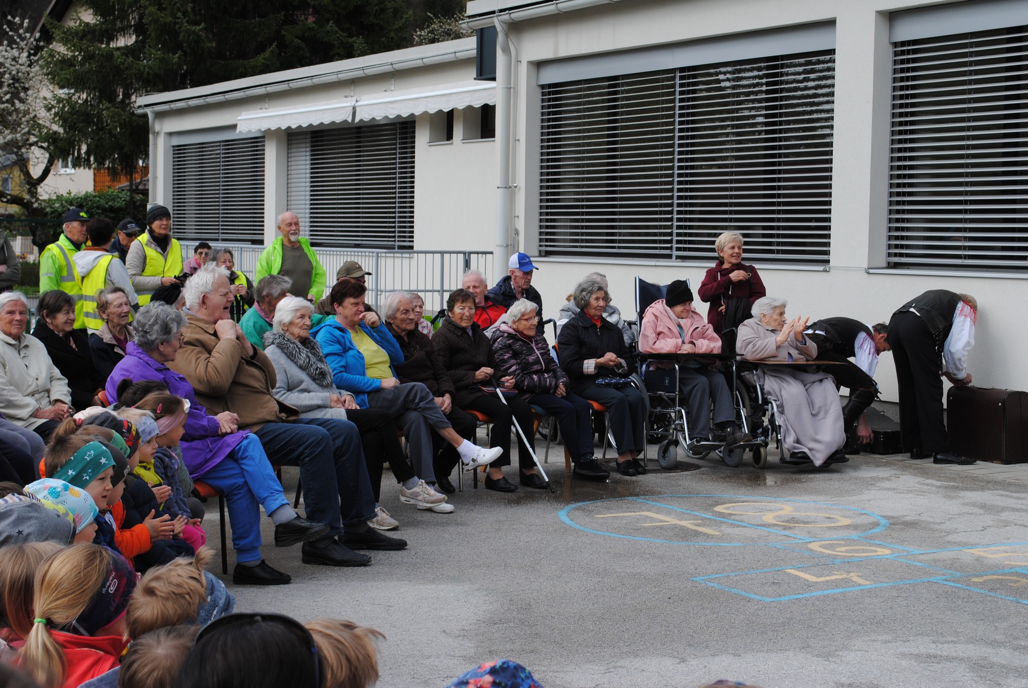 Vzgojiteljice Vrtca Deteljica so nas povabile na ogled nastopa folklorne skupine Julijana. Odzvalo se je skoraj 40 stanovalcev, nastop pa so si ogledale tudi vse skupine vrtca Tržič. Da smo bili varni in vidni na sprehodu do tja, so nam pomagali člani ZŠAM. Lepo smo se imeli!